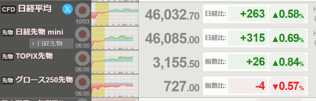 日経平均先物では46,000円を突破しています。