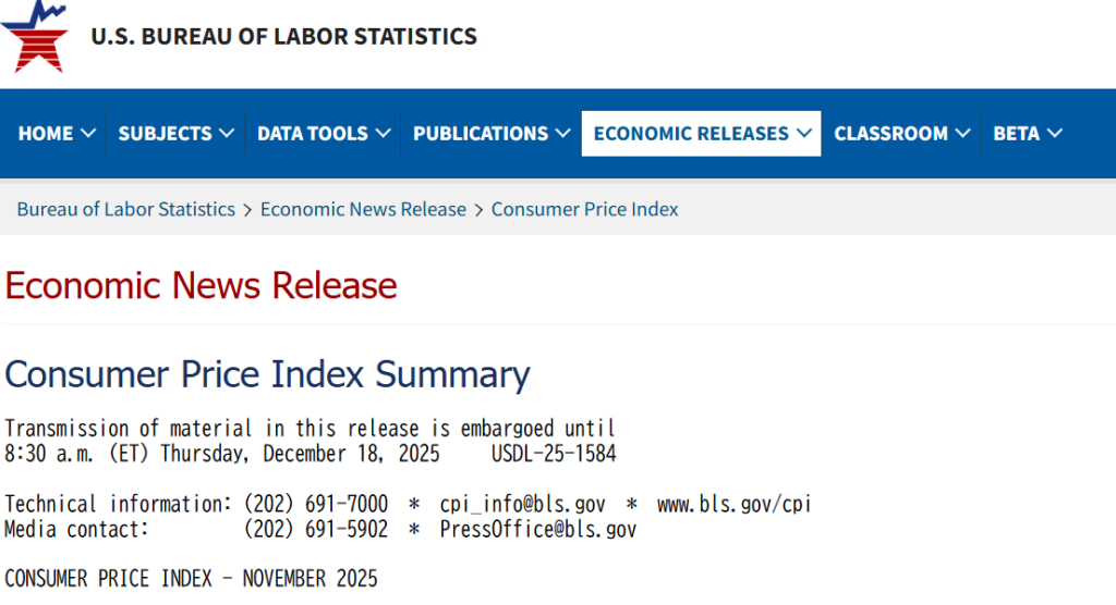 2025 年 12 月の消費者物価指数は、2026 年 1 月 13 日火曜日午前 8 時 30 分 (東部時間) に発表される予定です。