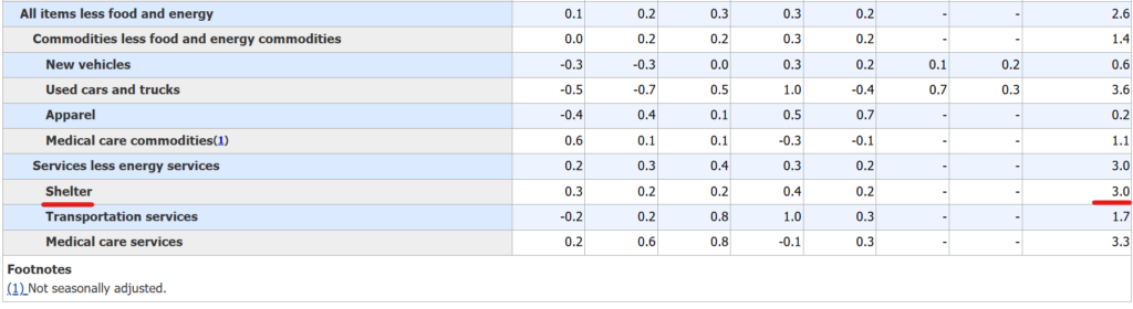 Shelter家賃価格は前年同月比プラス3.0%、先月比はデーターなしです。