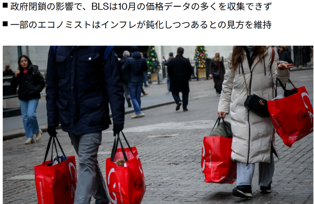 政府閉鎖の影響で、発表元の労働統計局(BLS)は10月の価格データの多くを収集できなかったほか、11月も通常より遅れて調査を開始した。食品とエネルギーを除くコアCPIは前年同月比2.6%上昇と、2021年以来の低い伸び。ブルームバーグ調査のエコノミスト予想を全て下回った。