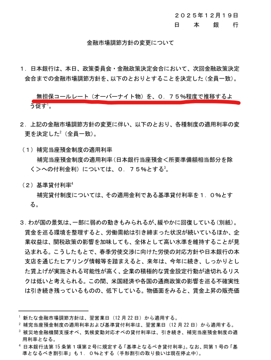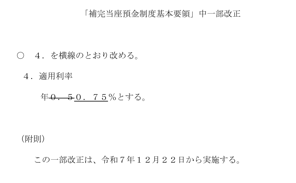 同時に日銀の当座預金の金利も0.75%すると発表されました。