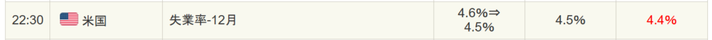 失業率、12月は予想4.5%に対して結果4.4%となっています。