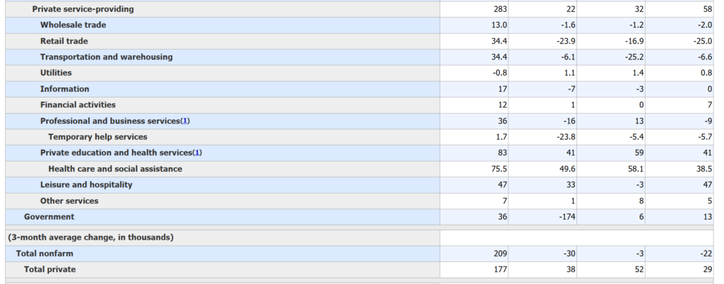 3ヶ月平均の非農業部門雇用者数の伸びはマイナス2.2万人になりました。