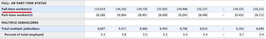 Full-time 正規労働者数は135,2150,000人でした。(1億3千215万人)でした。