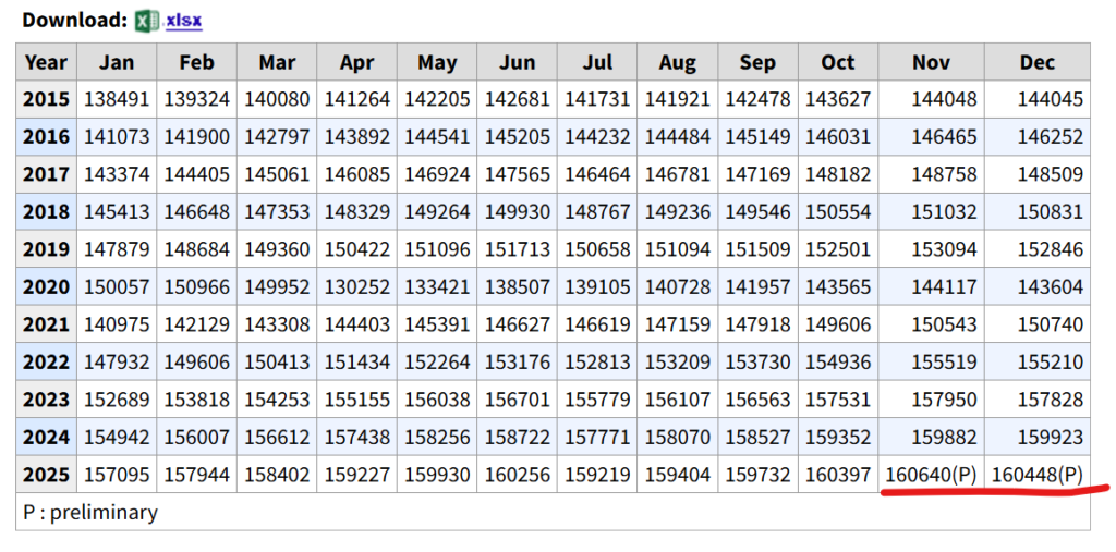 | 2025年12月。世帯調査は通常の複合重み付け方式に戻りました。 |