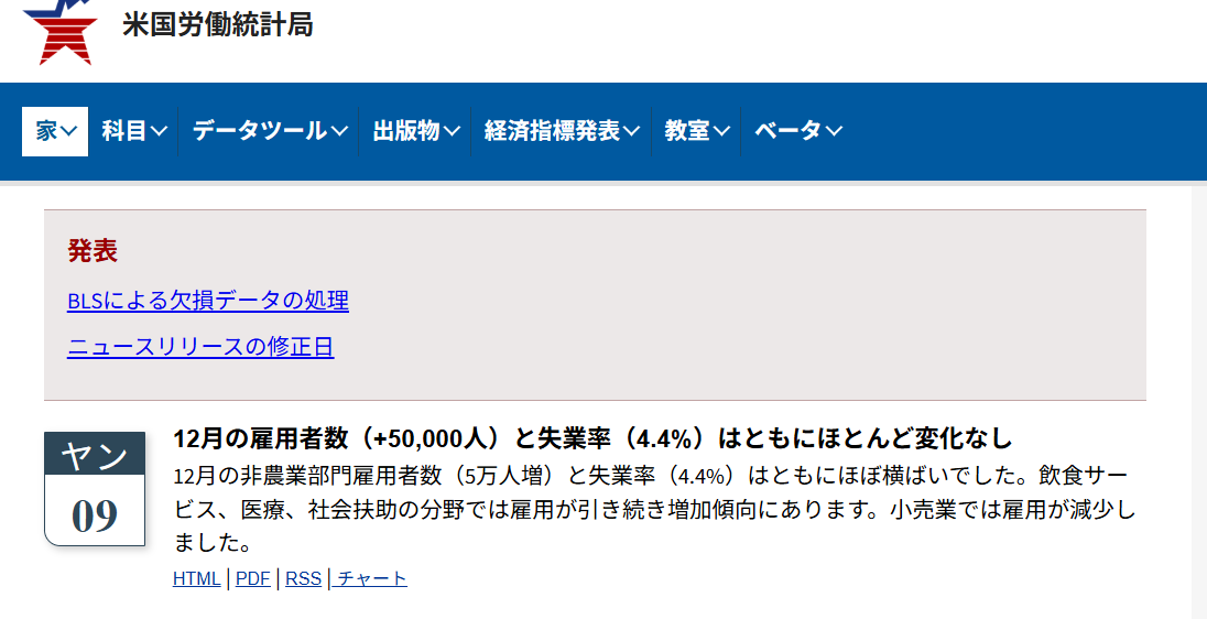 1月9日 日本時間22:30、アメリカ雇用統計がBLSより発表されました。2025 12月分です。