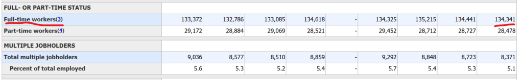 Full-time 正規労働者数は134,341,000人でした。(1億3千434,1万人)でした。