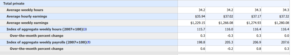 非管理職従業員は9セント(0.3%)上昇し、32.03ドルとなった。(表B-3および