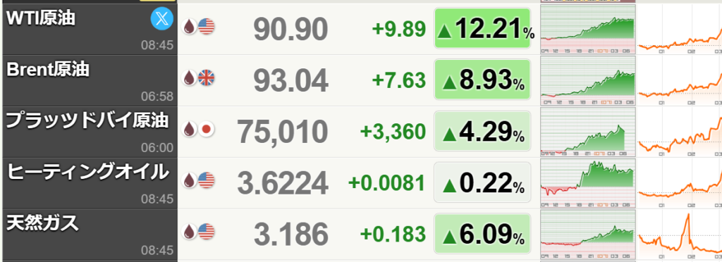 WTI原油価格は90ドルを突破して緊張感が増してきました。