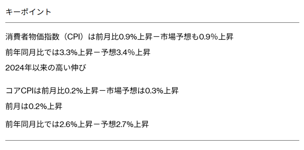 All items 総合CPIは前年同月比プラス3.3%、前月比は0.9%です.