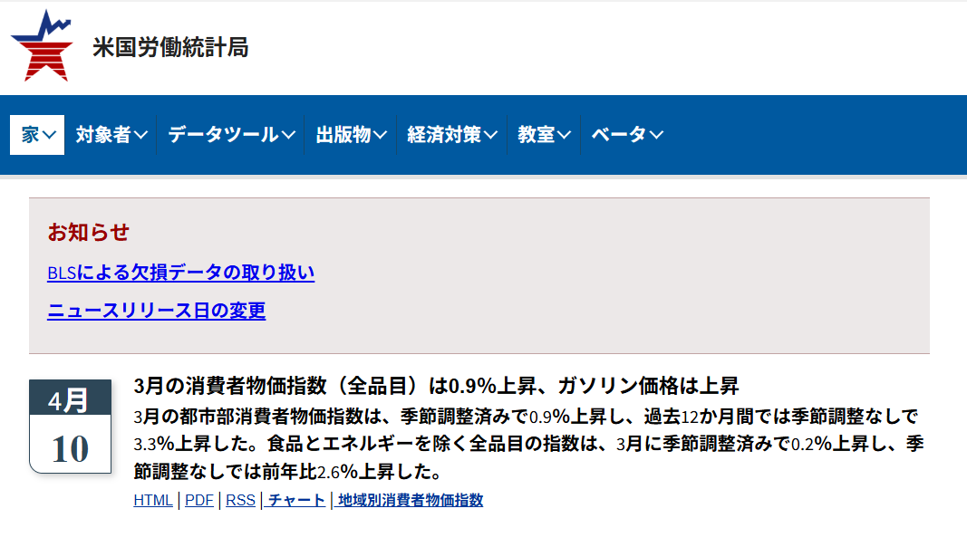 日本時間の21:30にアメリカのCPI 23月2026,がアメリカ労働局BLSより発表されました。